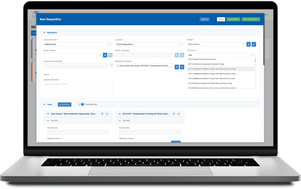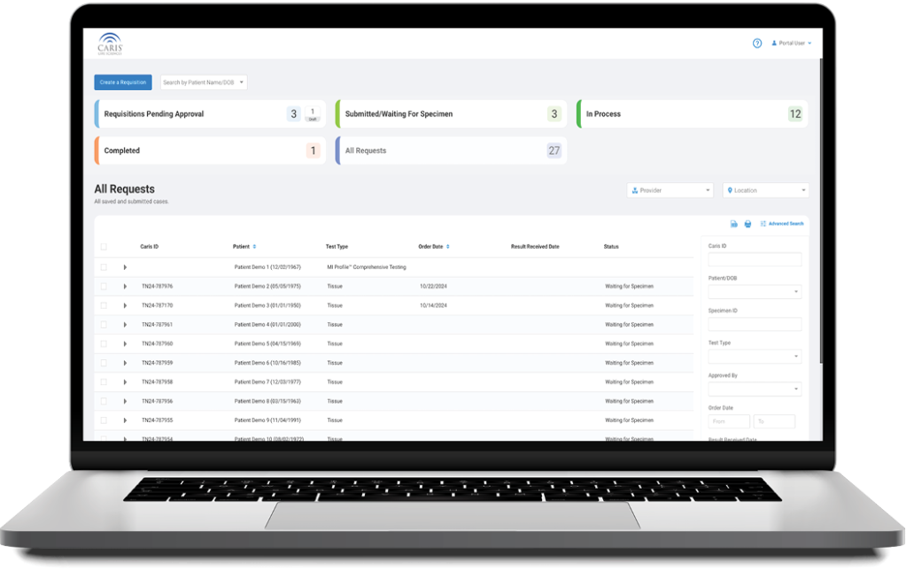 Caris+™Portal provides easy access for users to electronically submit orders, track case progress, view results and review Caris Life Sciences’ profiling information in one convenient location.